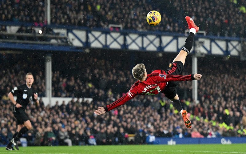 Pha ngả người móc bóng của Alejandro Garnacho vào lưới Everton